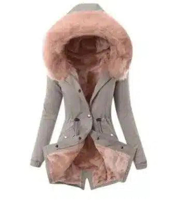 - Neckline/Shoulder Style: Hooded design with faux fur trim