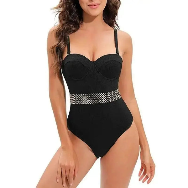 Product Description: Ins Style Black Pit Strip Swimsuit Bikini