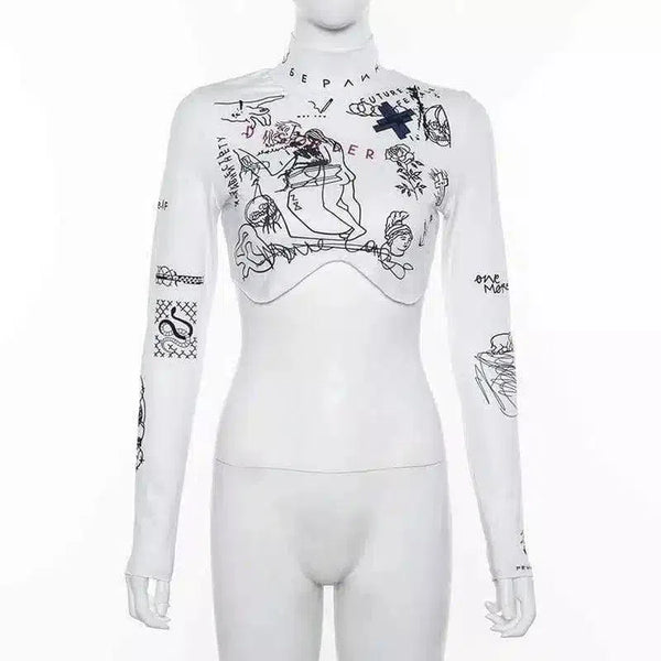 Tattoo Print Long Sleeve Bodysuit for Layering
