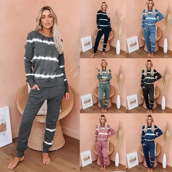 Long-Sleeved Trousers Pair Striped Tie-Dye Gradient Pajamas