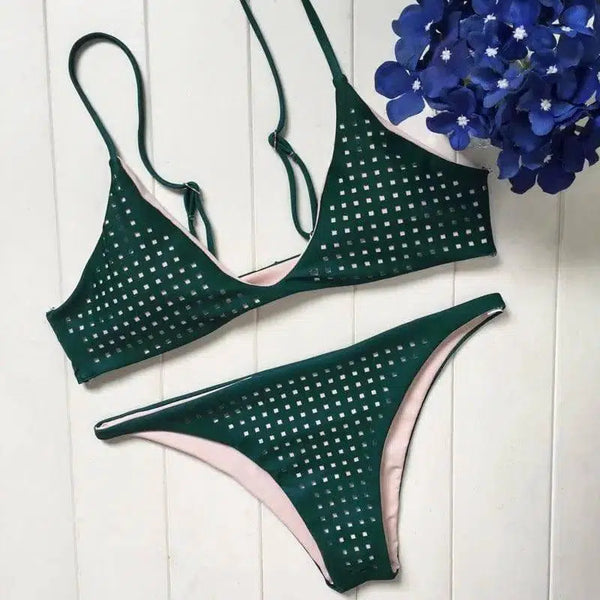Green Halter Spaghetti Straps Bikinis Swimwear