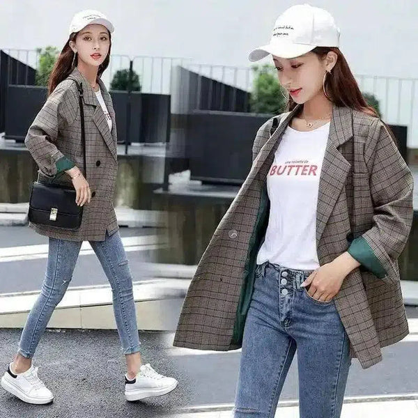 - Chic Plaid Blazer: Elevate your wardrobe with this sophisticated and trendsetting plaid blazer.