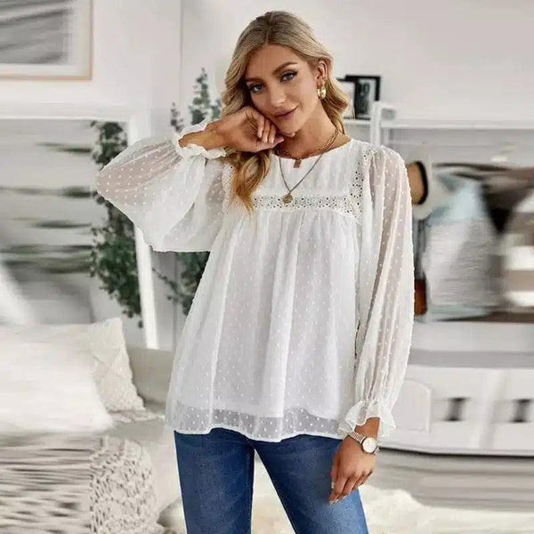 Women's Long Sleeve Sheer Blouse with Lace Detail