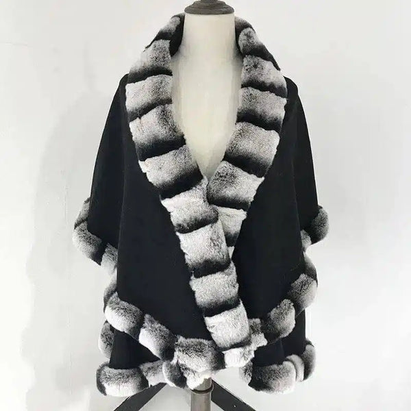 Shawl Cloak Fox Fur Stitching Cashmere Coat