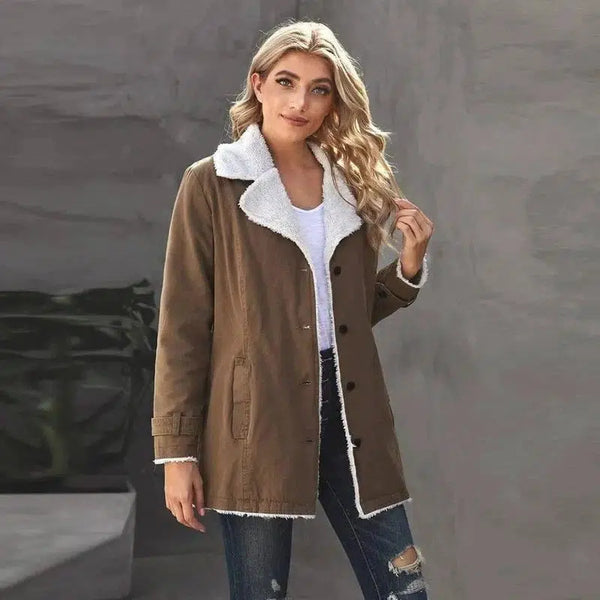 Velvet Coat Women Cross-border Mid-length Lapel Cotton