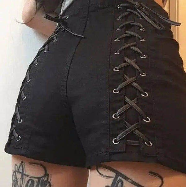 Product Description: Women Solid Shorts Criss Cross Bandage REGULAR High Waist