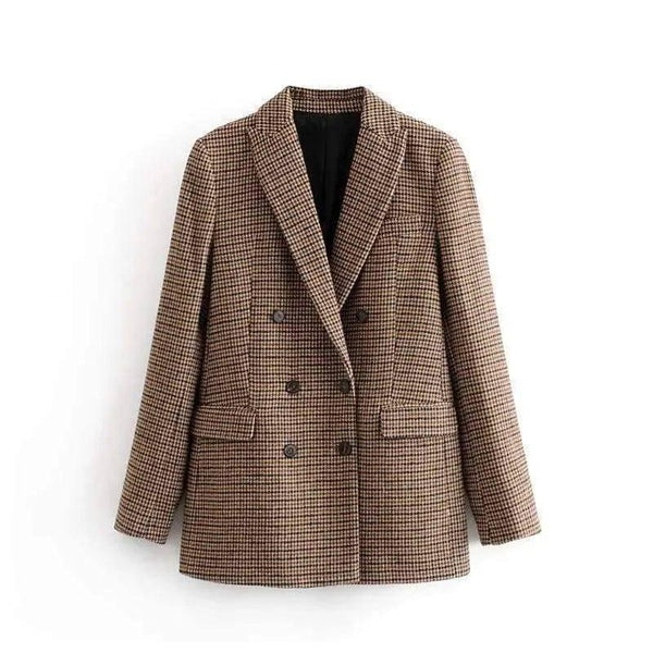 Women's Autumn And Winter Casual Double-Breasted Plaid