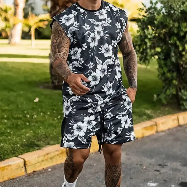Men's Fashion Quick Dry Pants Beach Shirt Two-Piece Set