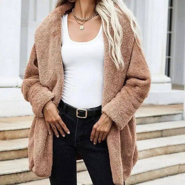 Brown Plush Cardigan Long-sleeved Trendy Double-sided