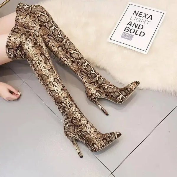 Pointed Print Stiletto Heel Over The Knee Stretch Boots