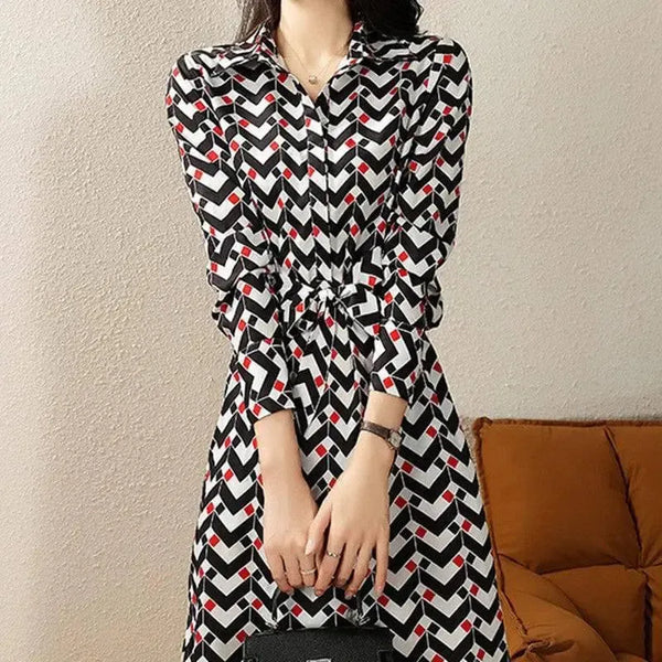Printed Long Sleeve Dress Women's Waist