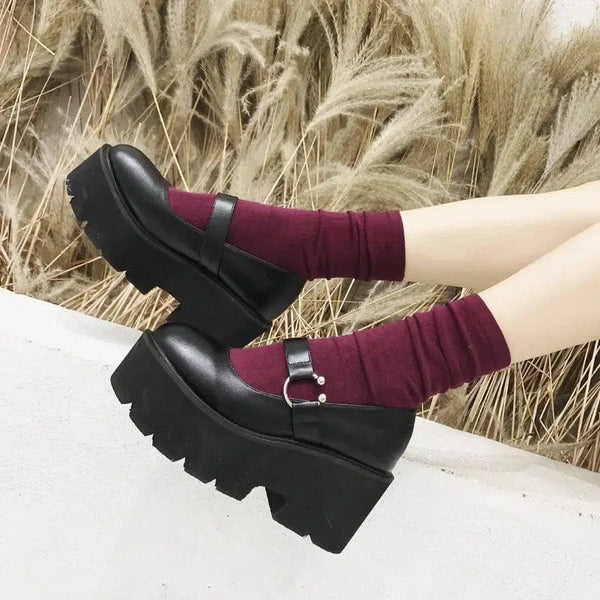 - Design: Retro-inspired platform shoes featuring a distinctive round buckle.