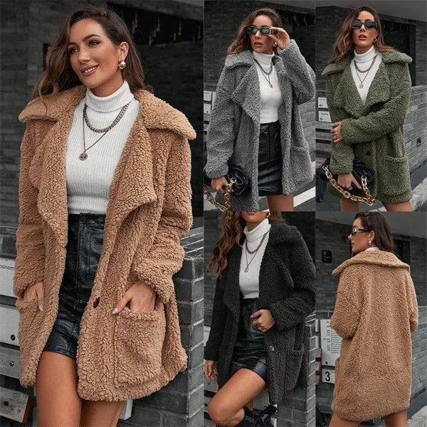 Single Breasted Bubble Fleece Jacket Loose Lapel Lamb Fleece