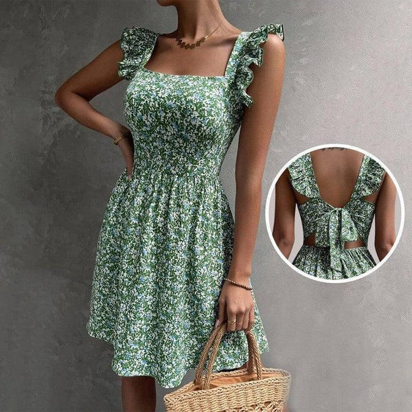 Summer Square-neck Ruffled Sleeveless Dress With Bow-tie