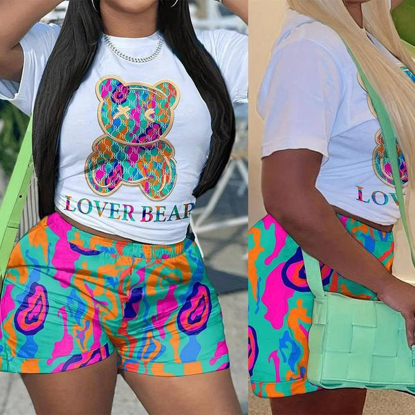 Product Description: Violent Bear Printed Short Sleeve Suit