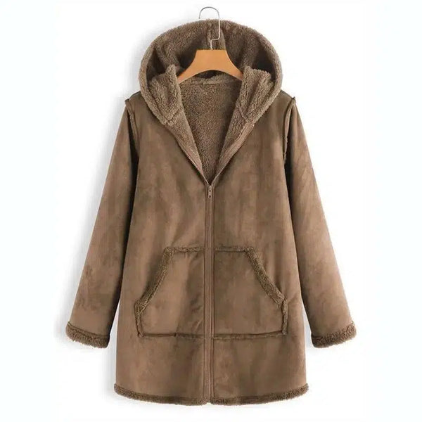 Winter Pocket Warm Plush Hooded Coat - Product Description: