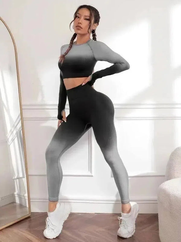 Women Yoga 2 Pieces Workout Outfits Seamless High Waist