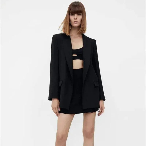 Women's Fashionable Curled Brim Cuff Polo Collar Top Blazer